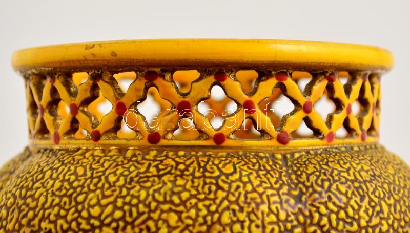 cca 1880 Zsolnay tiger mázas váza, porcelánfajansz, máz hibával, jelze...