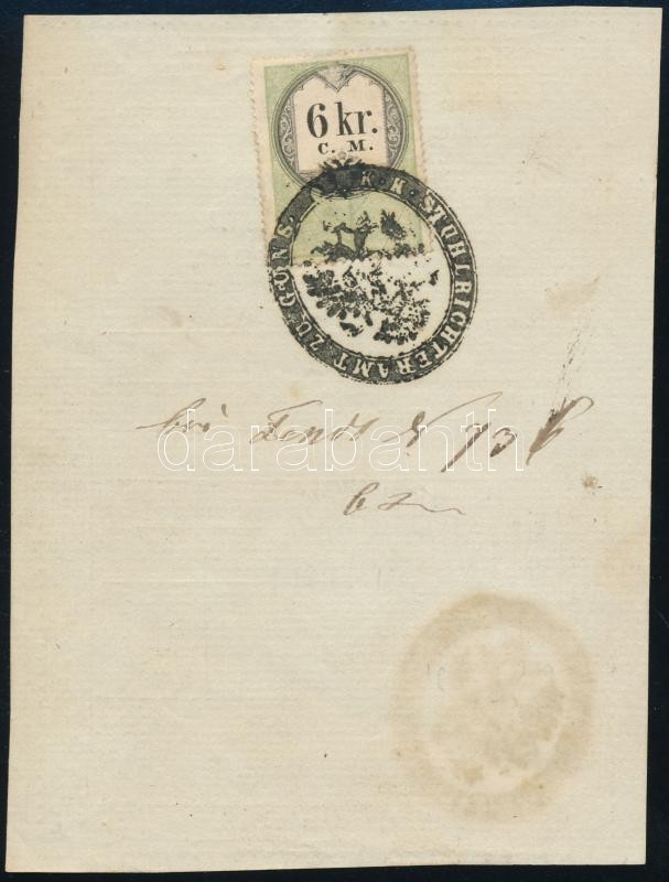 1857 Soproni közigazgatási terület igazolási jegy 6kr okmánybélyeggel ...