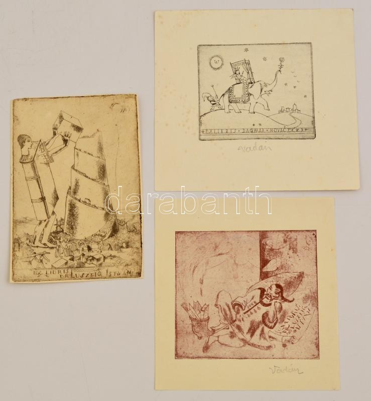 Vadász Endre (1901-1944): 3 db ex libris, rézkarc, klisé, papír, jelzettek / 3 bookplates of Endre Vadasz. Signed, etching and cliche.