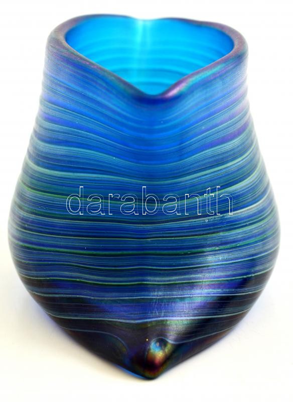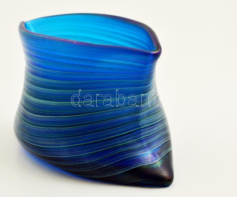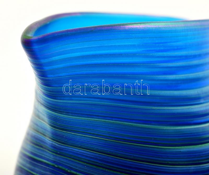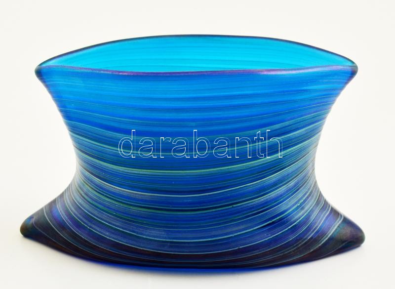 Horváth Márton (1941-2013): Díszváza, anyagában színezett, fújt üvegszál díszítéssel, hibátlan, jelzett, m:9,5 cm, h:15 cm
