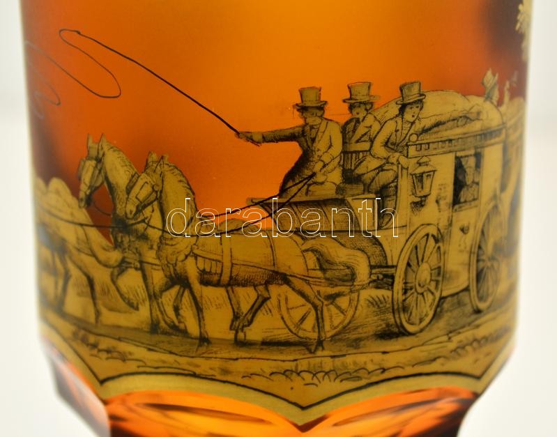 J.M. Pohl tervezte Moser borostyán fedeles kehely, részben kézzel fest...