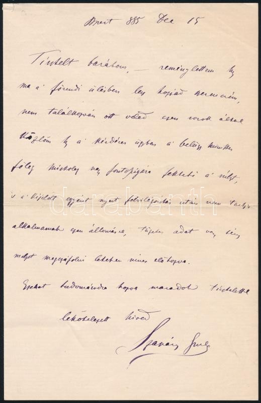 1885 Szapáry Gyula (1832-1905) politikus, későbbi miniszterelnök kézze... https://www.darabanth.com/en/28-Major-auction/28.1/Other-collectibles/Historical-documents-manuscripts~11297/1885-Szapary-Gyula-1832-1905-politikus-kesobbi-miniszterelnok-kezzel-irt-levele-azonositat~II1670132