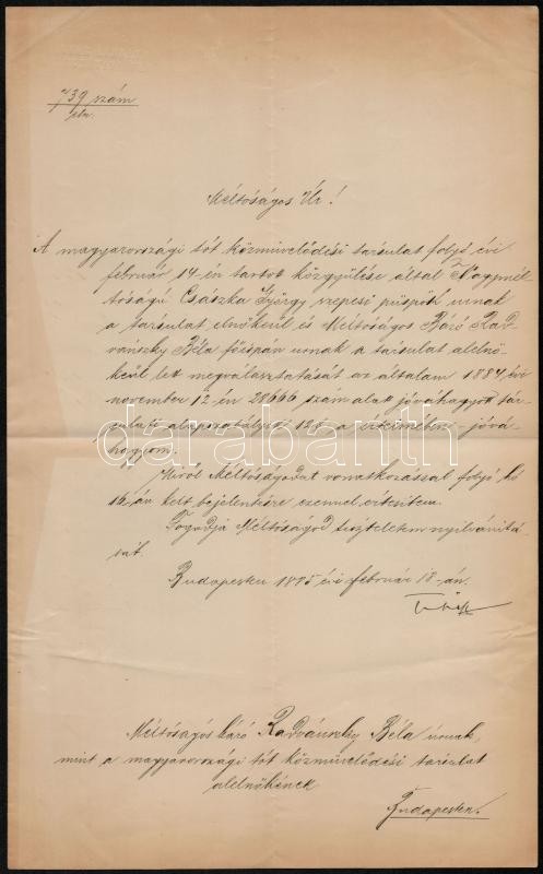 https://www.darabanth.com/en/28-Major-auction/28.1/Other-collectibles/Historical-documents-manuscripts~11297/1885-Tisza-Kalman-1830-1902-mint-belugyminiszter-sajat-kezuleg-alairt-levele-baro-Radvan~II1681896
