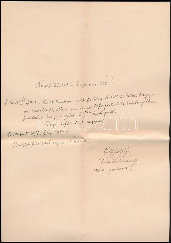1897 gróf Tisza Kálmán (1830-1902) saját kézzel írt levele Szél Kálmán... https://www.darabanth.com/en/28-Major-auction/28.1/Other-collectibles/Historical-documents-manuscripts~11297/1897-grof-Tisza-Kalman-1830-1902-sajat-kezzel-irt-levele-Szel-Kalman-reformatus-esperesn~II1681591