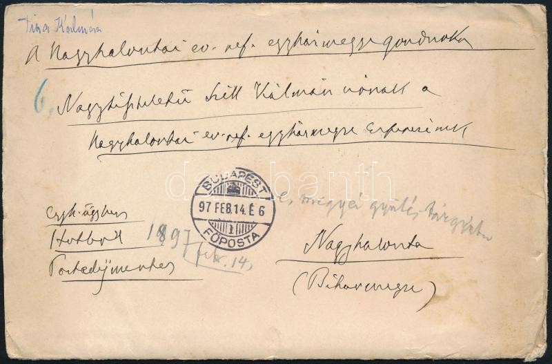 Description: 1897 gróf Tisza Kálmán (1830-1902) saját kézzel írt levele Szél Kálmán református esperesnek (1838-1928) református egyház ügyeiben. Egy beírt oldal. Borítékkal.