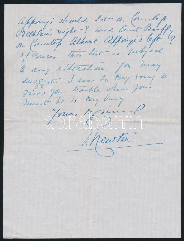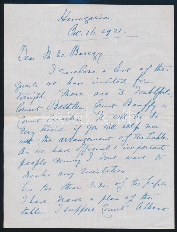 1921 Lord Rothermere (Sidney Harold Harmsworth) 1868-1940 magyar revÃziós törekvéseket támogató angol fÅ‘rend saját kézzel Ãrt, személyes hangú levele levele Bárczy István budapesti polgármesternek, államtitkárnak.