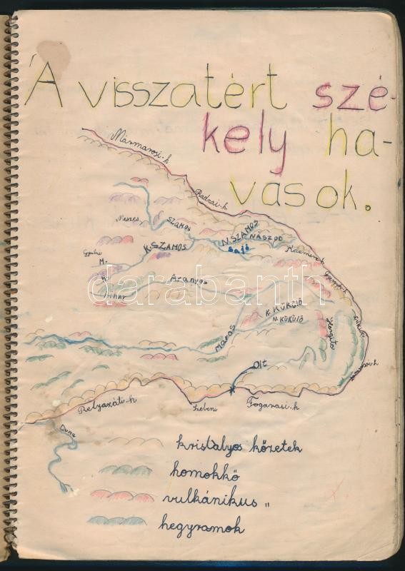 cca 1940 Gyermek iskolai füzet a visszatért Erdélyről és egyéb földrajzi és történelmi érdekességekről