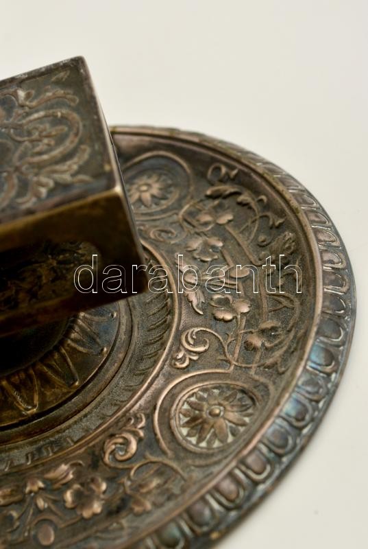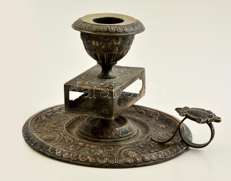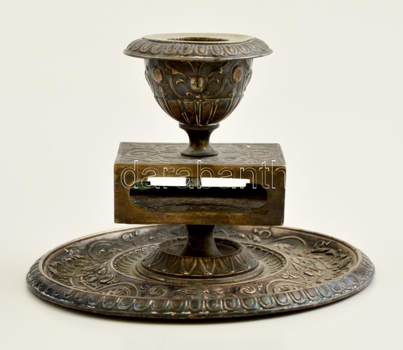 Ezüst gyertya és gyufatartó, jelzett. / Silver candle and match holder. gr: 161 g. Hallmarked. 10 cm