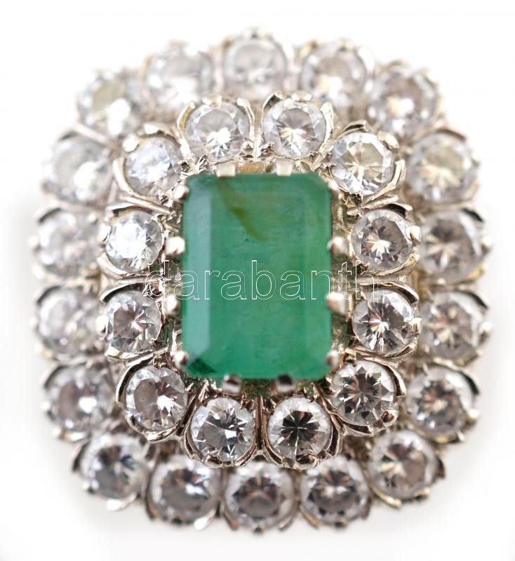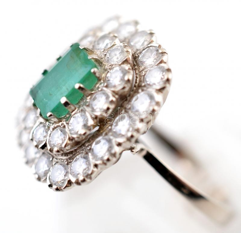 Fehér arany (14 K) gyűrű táblás csiszolású smaragd kővel, körülötte 30... https://www.darabanth.com/en/28-Major-auction/28.1/Other-collectibles/Jewellery~11298/Feher-arany-14-K-gyuru-tablas-csiszolasu-smaragd-kovel-korulotte-30-db-csiszolt-brill-~II1676392