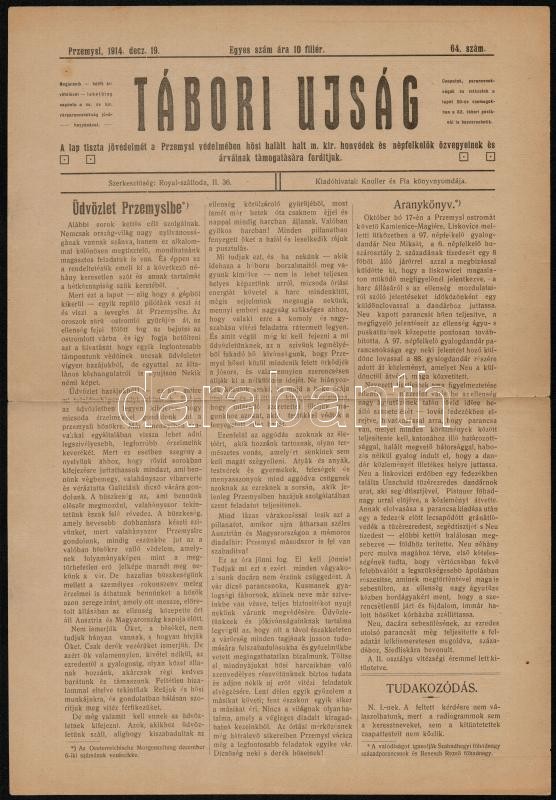 1914 Przemyśl, Tábori Újság, a 23. honvéd gyalogezred által Przemyśl e... https://www.darabanth.com/en/28-Major-auction/28.1/Other-collectibles/Military~11299/1914-PrzemyC59Bl-Tabori-Ujsag-a-23-honved-gyalogezred-altal-PrzemyC59Bl-elso-es-masodik-ostro~II1670597