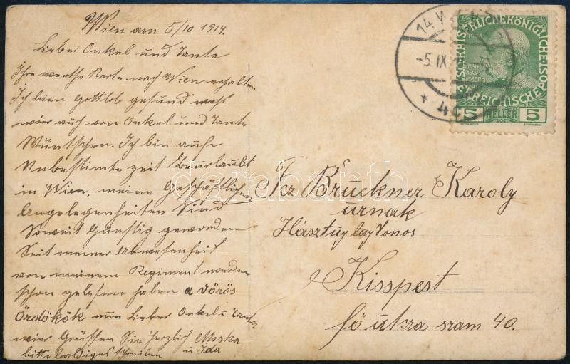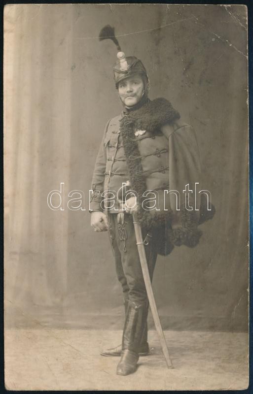 1914 "Vörös ördög" - huszár - portréja, fotólap, postán megküldve, 13,5×8,5 cm / 1914 Portrait of a "Red Devil" Hungarian Hussair, photograph sent by post, 13,5×8,5 cm