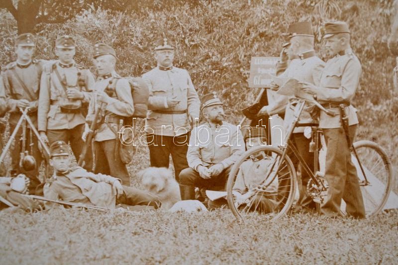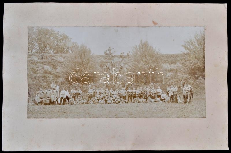 cca 1910 K. u. k. gyalogos csapattest csoportképe terepen, nagyméretű fotó, 20×38,5 cm / Austro-Hungarian Army, group photo, 20x38,5 cm