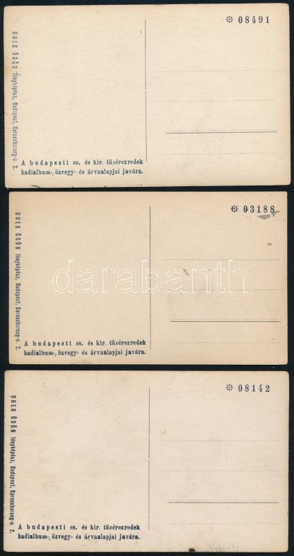 cca 1914-1918 Uher Ödön (1859-1931) budapesti fényképész sorszámozott fotólapjai az I. vh-ból, 11 db vintage katonai fotólap, 9x14 cm