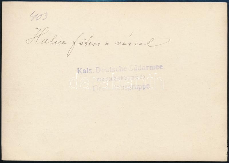 cca 1915 Halics (ma: Ukrajna) főtere a várral, fotó, hátulján felirato... https://www.darabanth.com/en/28-Major-auction/28.1/Other-collectibles/Military~11299/cca-1915-Halics-ma-Ukrajna-fotere-a-varral-foto-hatuljan-feliratozva-pecsettel-jelzett-~II1678501