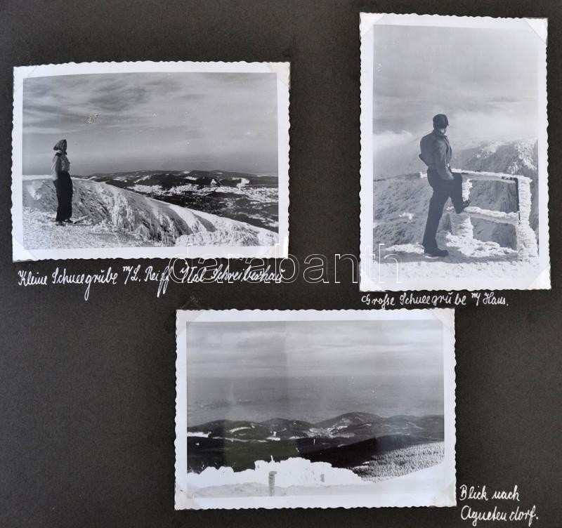 Description: cca 1938-39 Katonai szolgálat. Birodalmi katona emlékalbuma. 114 db fénykép bőr albumban részletesen feliratozva. / 1938-39 German soldiers memorial album with 114 photos with detailed description. Album in leather cover 30x22 cm