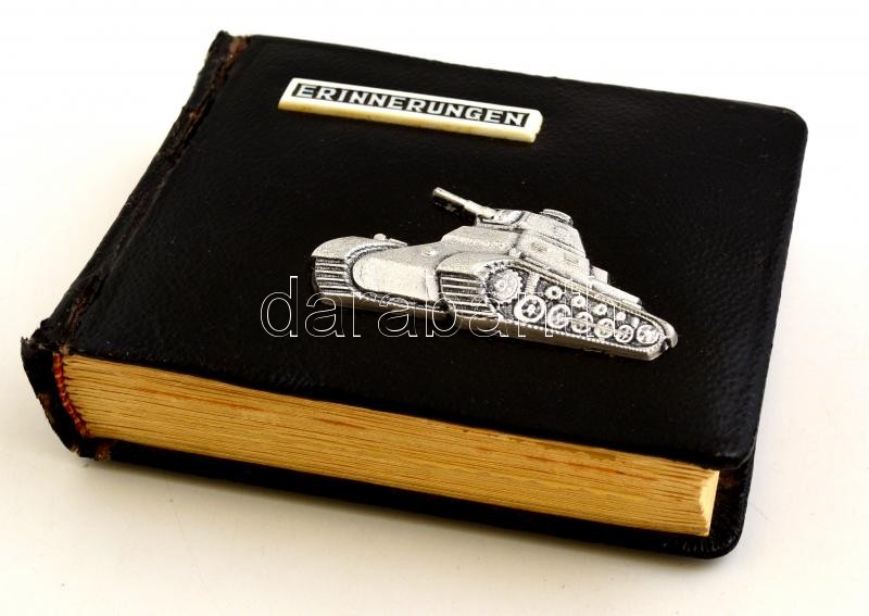 Description: cca 1942 Reichsarbeitsdienst RAD. Birodalmi munkaszolgálatos katonák emlékalbuma. 56 db fénykép tank díszítéssel ellátott bőr albumban. / cca 1942 RAD soldiers memorial album with 56 photos. Album in leather cover with tank. 12x9 cm