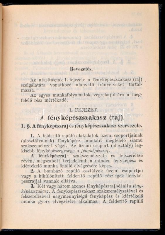 cca 1942 Repülő fényképész utasítás, egészvászon kötés, M. Kir. Honvédelmi Minisztérium kiadványa, 183p