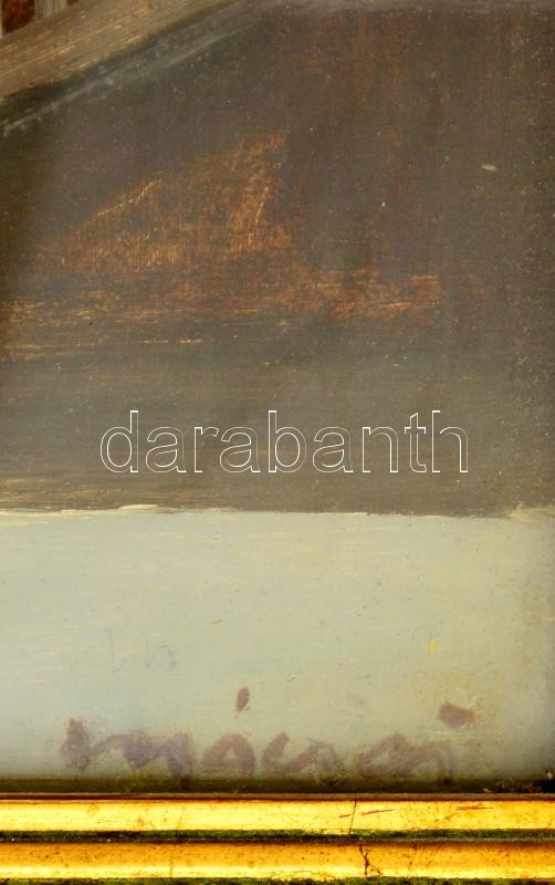 Mácsai István (1922- 2005): Vár alatt. Olaj,farost, jelzett, üvegezett...