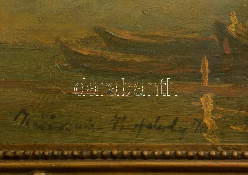 Mészárosné Kisfaludy Mariska (1887-?): Vitorlások. Olaj, falemez, jelzett, hibás antik keretben, 13×23 cm