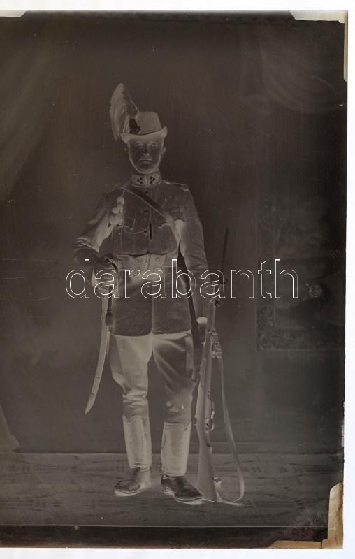 cca 1925 Eger, a Foto-GRÁF műteremből 13 db vintage üveglemez negatív (csendőr, jelmezes lány, viseletek, ápolónők, mesterember, városkép, iskolai csoportkép, katona portré), 12x16 cm