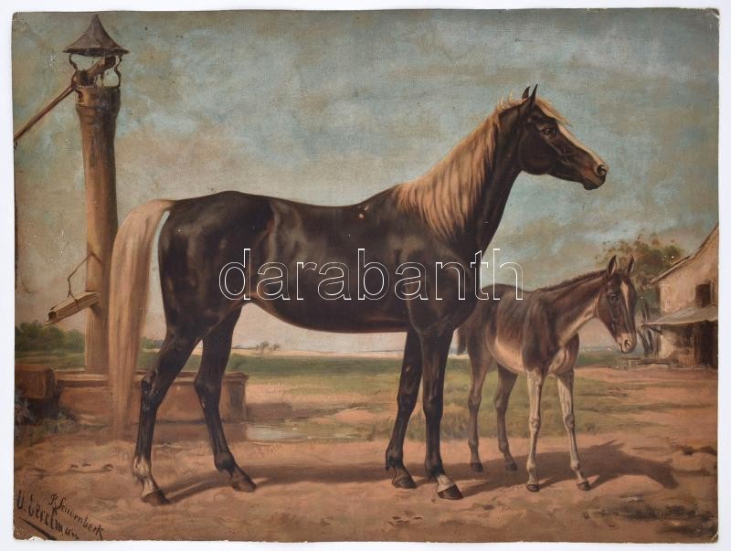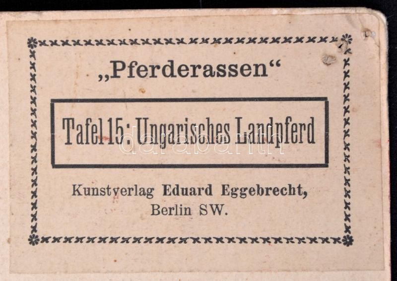 1903 Magyar nóniusz ló. Otto Eerelman és Richard Schoenbeck festménye után készült színes litográfia, Kunstverlag Eduard Eggebrecht, Pferderassen sorozat 15. tábla, sarkainál tűnyomok, 44,5x59 cm / Ungarisches Landpferd horse, chromolithography, with pinholes on the corners, 44,5x59 cm
