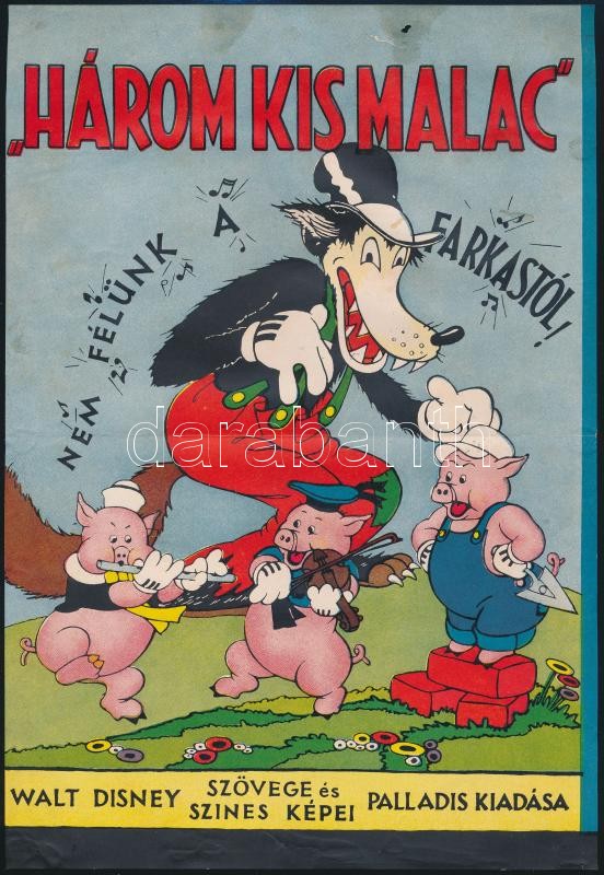 1940 Walt Disney A három kismalac. c. könyvének reklám plakátja. Ofsze... https://www.darabanth.com/en/28-Major-auction/28.1/Other-collectibles/Poster~11192/1940-Walt-Disney-A-harom-kismalac-c-konyvenek-reklam-plakatja-Ofszet-Egy-apro-hiannyal-~II1639311