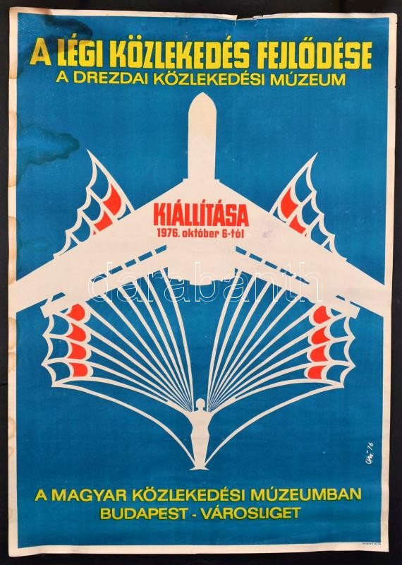 1976 A légi közlekedés fejlődése . A drezdai múzeum kiállítása, plakát, szélein kis sérülésekkel, foltos, 81×57 cm