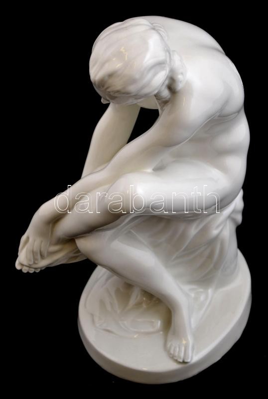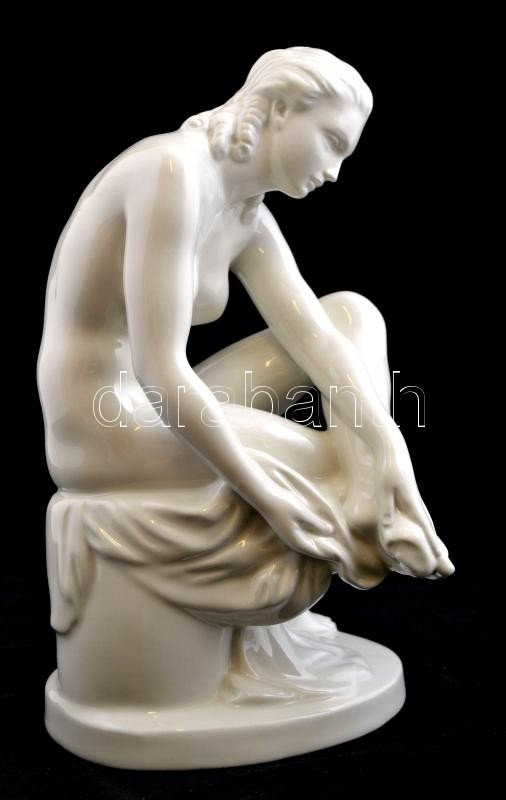 Kisfaludi Stróbl Zsigmond (1884-1975): Fürdés után. fehér mázas porcelán, jelzett, hibátlan, m: 29 cm