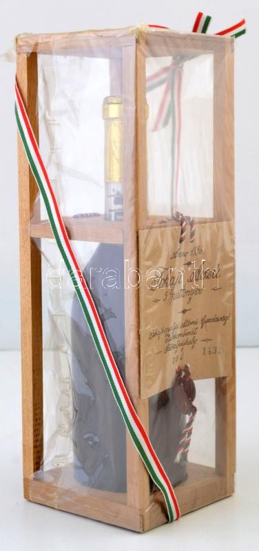 1956-os évjáratú bontatlan palack Tokaji Aszú, díszcsomagolásban / 1956 Tokaji Aszu wine. Unopened bottle in wooden case.