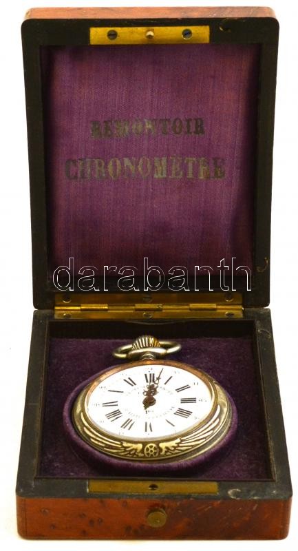 Description: cca 1900 Roskopf Valódi Szab. Vasúti Óra. Vasutas zsebóra magyar nyelvű dombornyomott feliratozással a fém tokon. Remontoir fa óradobozban. Működő, szép állapotban. / Railways pocket watch in wooden wantch box. Nice condition.