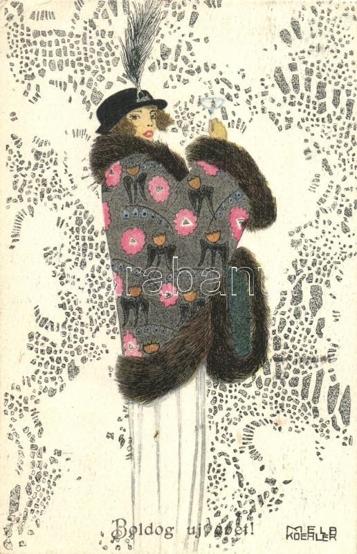 Boldog Újévet! / Art Nouveau lady, B.K.W.I. 3090-2. s: Mela Koehler (EK)