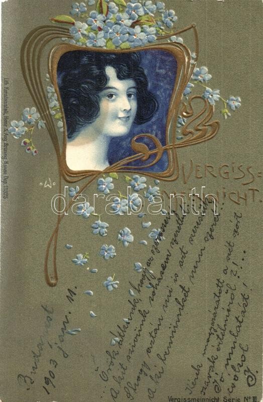 Vergissmeinnicht / Kunstanstalt Heinr. & Aug. Brünning, Vergissmeinnicht Serie No. III. Art Nouveau Emb. litho (fl)