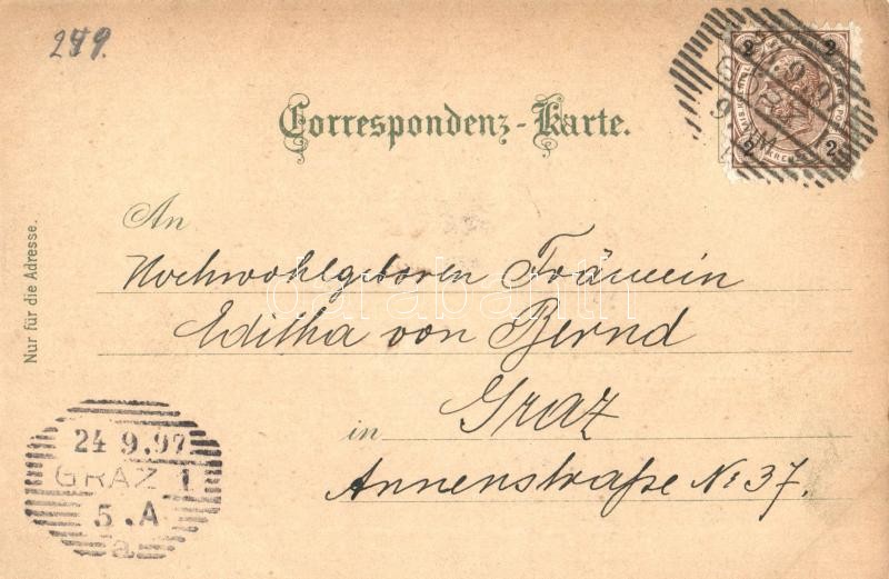 1897 (Vorläufer!) Ehrenhausen, Georgi Schloss, Mausoleum / castle, mausoleum. Karl Schwidernoch, Art Nouveau, floral, litho (EB)