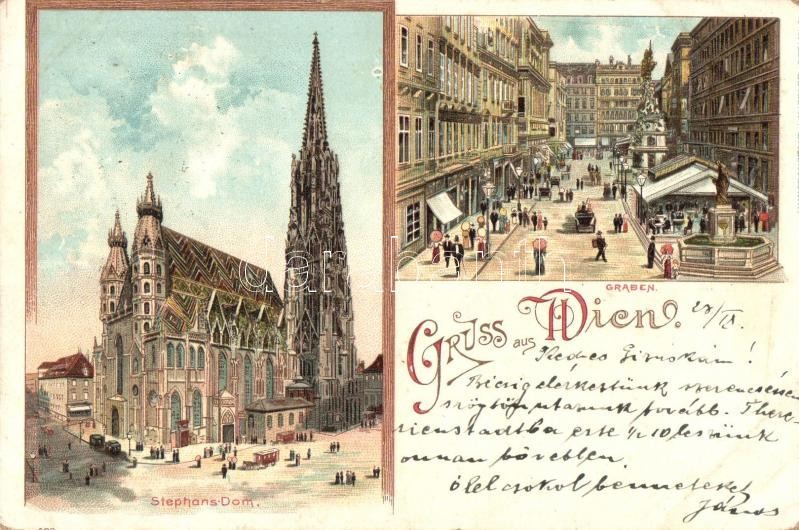 1898 Wien, Vienna, Bécs; Graben, Stephansdom / street view, church. litho (EK)