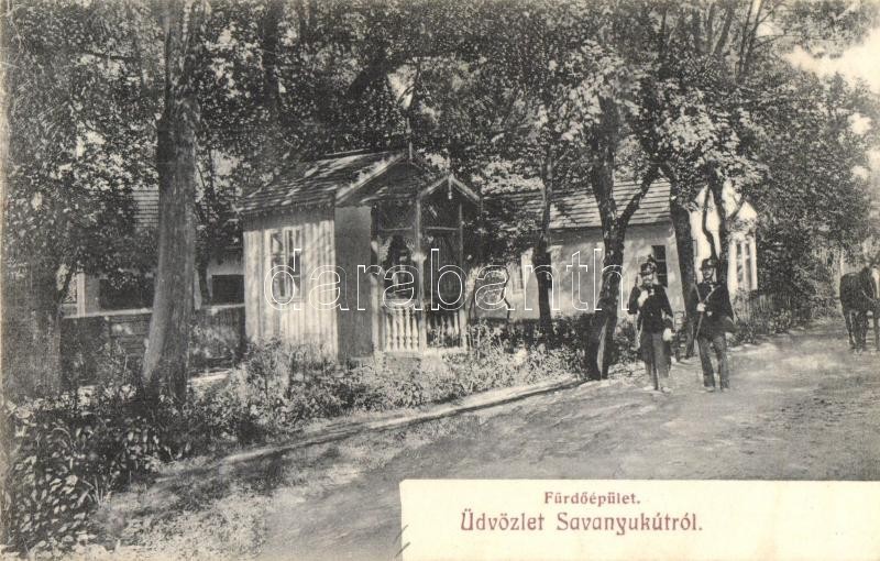 Savanyúkút, Sauerbrunn; Fürdőépület csendőrökkel. Zeitler Lajos kiadás...