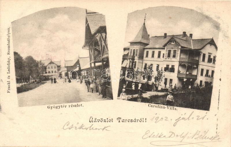Tarcsa, Tatzmannsdorf; utcakép gyógyszertárral, Carolina Villa. Kiadja Frankl és Ledofsky / street view with pharmacy, villa