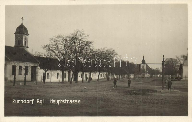 Zurány, Zurndorf; Fő utca és templomok / Hauptstrasse / main street, c...