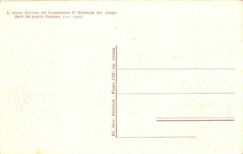 1921 Fiume, The last speech of Gabriele D'Annunzio before his lea... https://www.darabanth.com/en/28-Major-auction/28.1/Postcards/Croatia~11307/1921-Fiume-The-last-speech-of-Gabriele-DAnnunzio-before-his-leaving-hustings-before-the-revolutio~II1686913