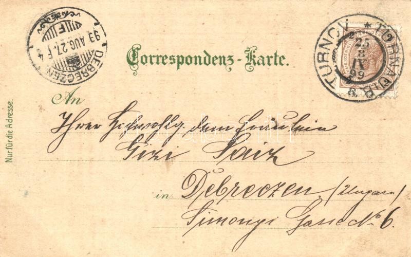 1899 Turnov, Turnova nad Jizerou, Turnau; Gross Rohozetz, K.k. Landwehr Kaserne, K.u.k. Infanterie Kaserne / castle, military barracks. Karl Schwidernoch Art Nouveau, floral, litho (EK)