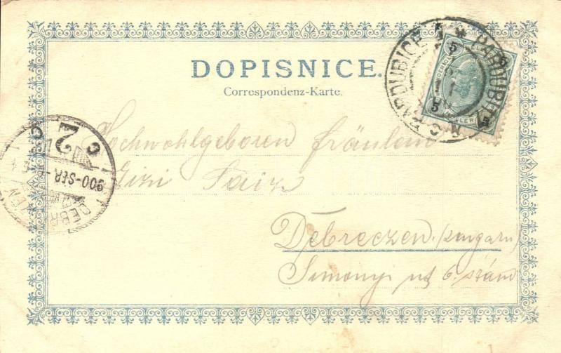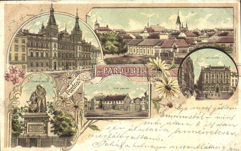 Pardubice, Radnice, Obc. Zalozna, Bile predmesti, Pomnik Bc. Veverku / town hall, monument. Art Nouveau, floral, litho (EK)