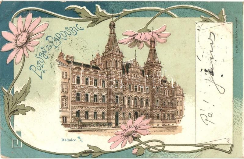 Pardubice, Radnice / town hall. Otto & Ruzicka Art Nouveau, floral, litho