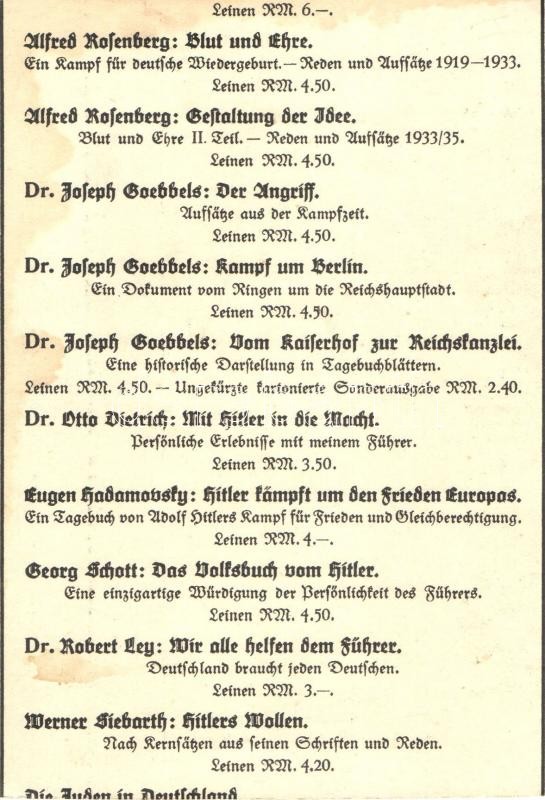 Adolf Hitler. Nazi book titles and authors on the backside (non PC) (cut)