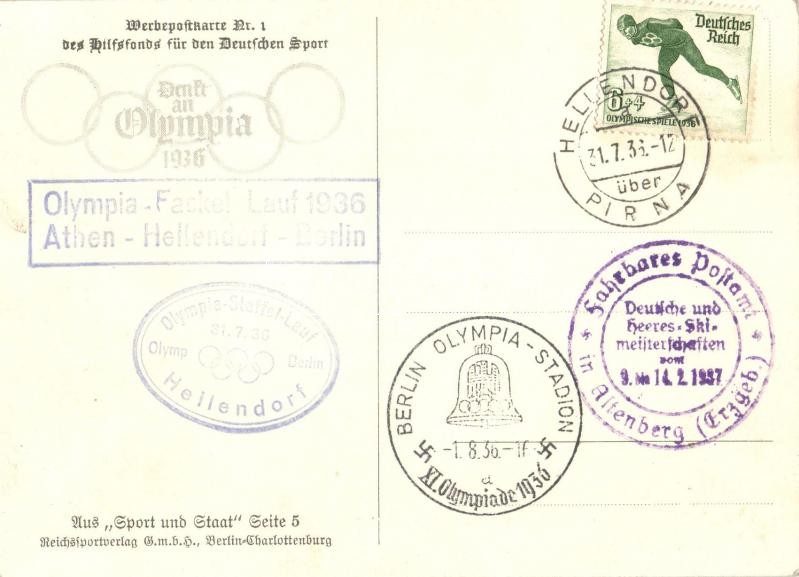 Adolf Hitler. Werbepostkarte Nr. 1. des Hilfsfonds für den Deutschen Sport. Aus Sport und Staat Seite 5 / "1936 XI. Olympiade" So. Stpl