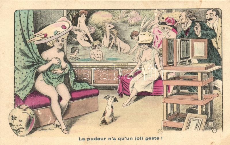 La pudeur n'a qu'un joli geste! / French erotic art postcard...
