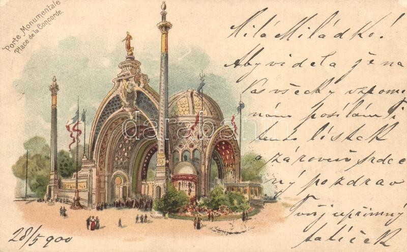 1900 Paris, Exposition Universelle, Porte Monumentale, Place de la Concorde. litho (EK)
