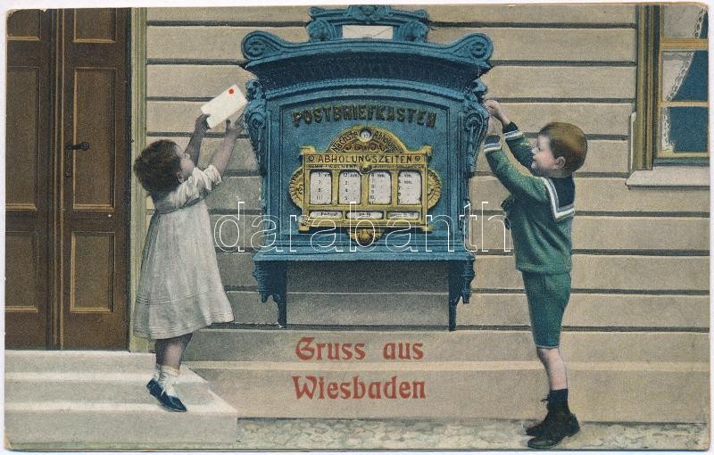 Wiesbaden, Gruss aus... Postbriefkasten / greeting card with mail box....