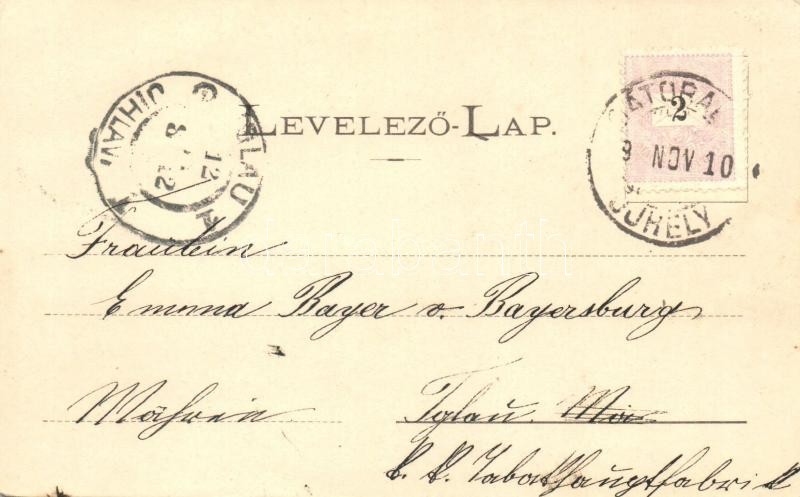 1899 Sátoraljaújhely, Vármegyeház, Kazinczy Mauzóleum, Rákóczi szülőháza Borsiban, floral; kiadja Lőwy Adolf