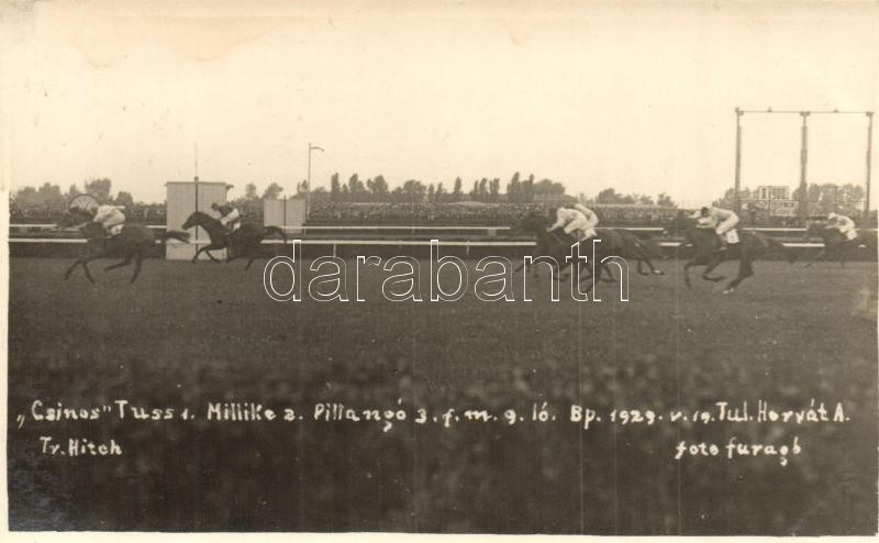 1929 Budapest IV. Újpesti lóversenypálya versenykor. Faragó fényképész, photo