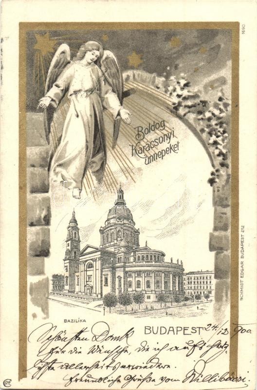 Budapest V. Bazilika. Boldog Karácsonyi Ünnepeket! angyalos litho kere...