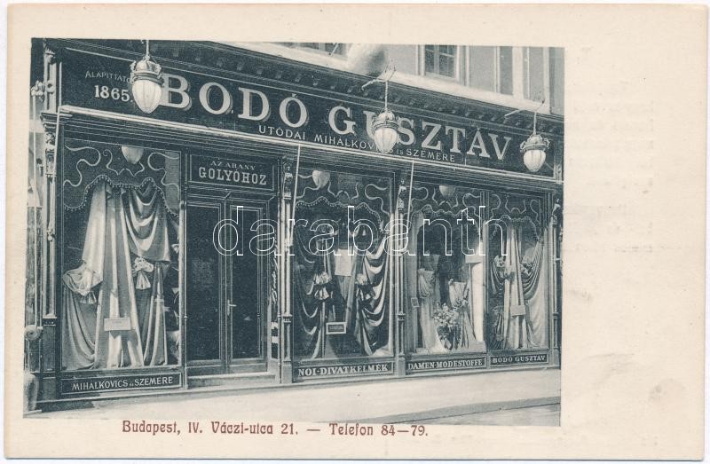 https://www.darabanth.com/en/28-Major-auction/28.1/Postcards/Hungary~11303/Budapest-V-Bodo-Gusztav-utodai-Mihalkovics-es-Szemere-Noi-divatkelmek-uzlete-az-arany-gol~II1668242